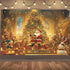 Christmas themed background, including Santa Claus, deer, holiday tree, and candles