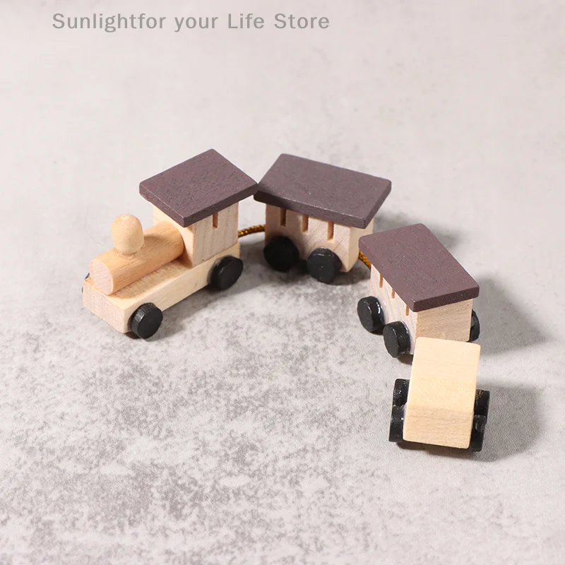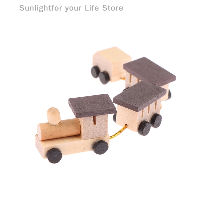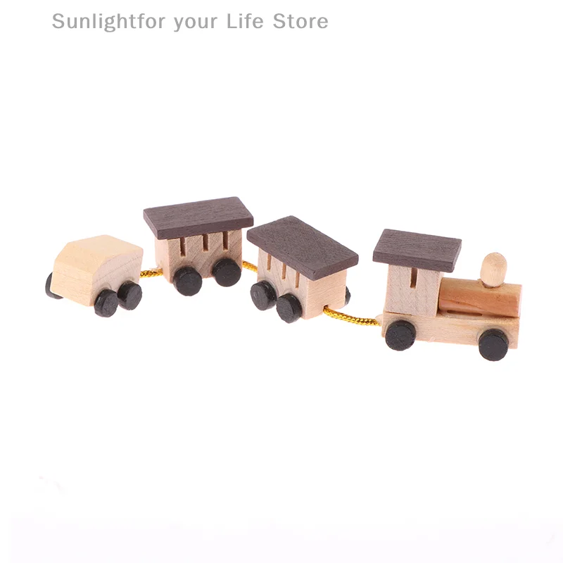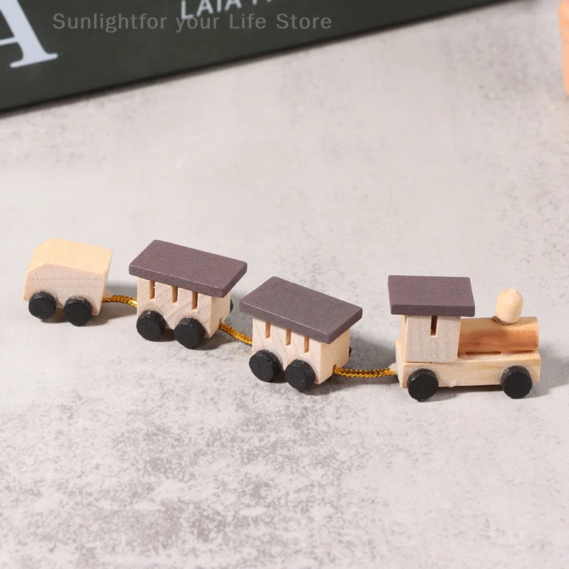 Christmas Wood Train Dollhouse Miniature Kid Pretend Play Toy Mini Scenery Xmas Table Top Ornament Party Decor Navidad Gift
