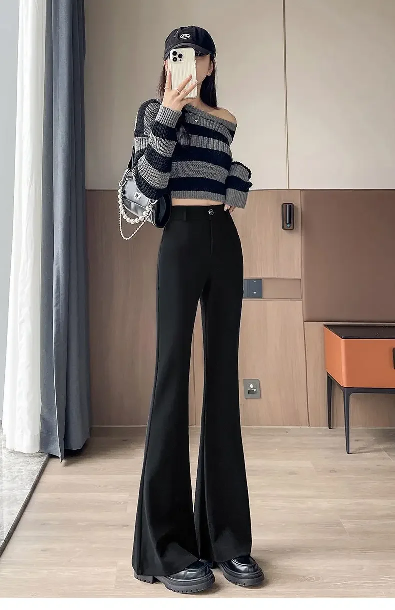 Small Flare-bottom Pants for Women's Spring New Black High-waisted Slim and Stretchy Casual Suit Pants