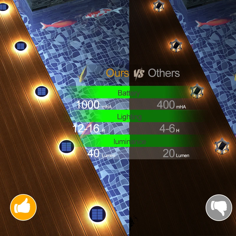 【Brighter and Longer Lifespan】The solar lights outdoor for deck provides 360 ° lighting,charging 6 hours in summer, lit from dusk to dawn.Waterproof,heat and pressure resistant quality,more than 3 years of lifespan.