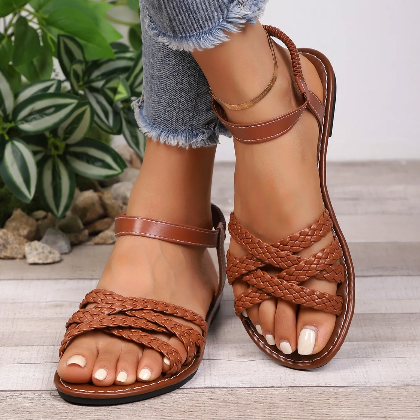 Summer 2025 New Women Sandals Non Slip Rubber Soles Fashion Shoes for Women Flat Bottom Roman Strap Sandals Sandalias De Mujer