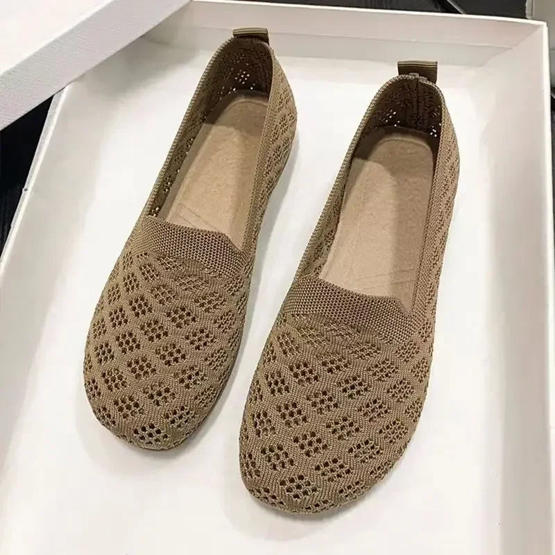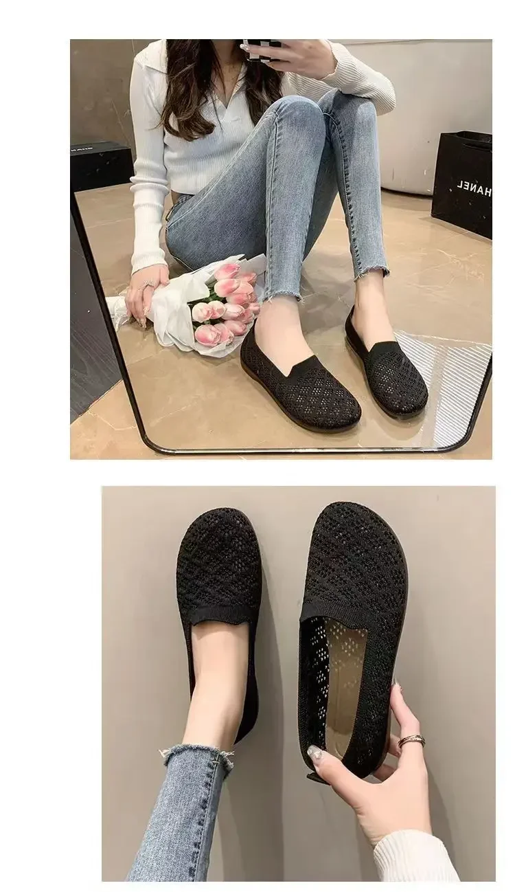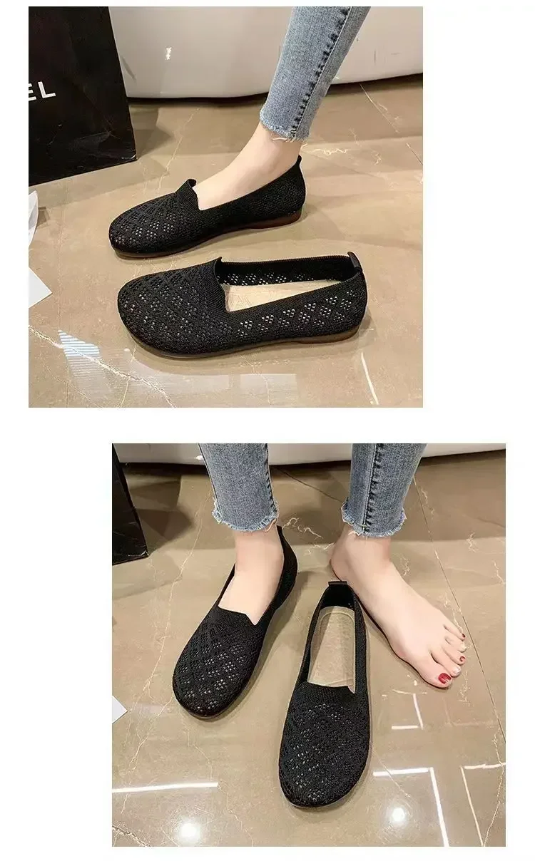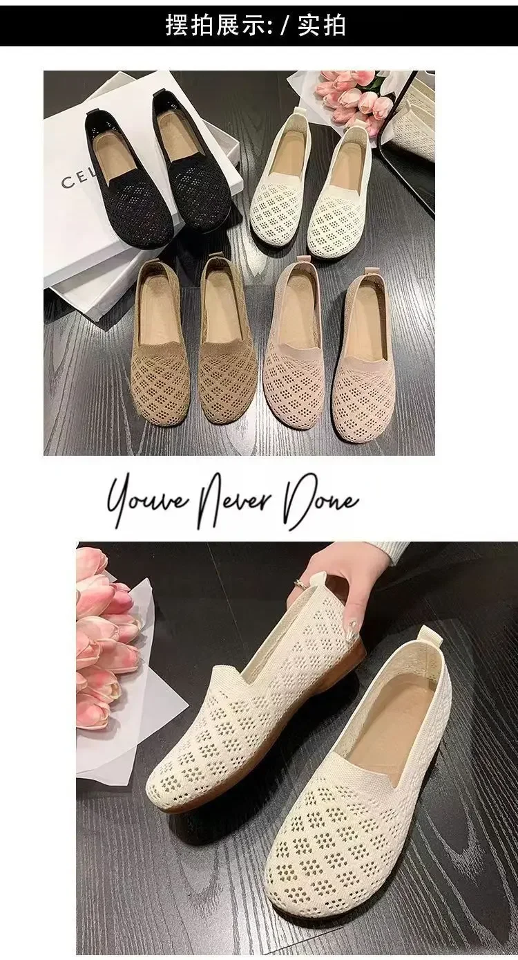 Summer Mesh Fabrics Breathable Flats Women Shoes Ventilate Lace Leisure Loafers Mom Shoes Comfort Casual Light Sneakers