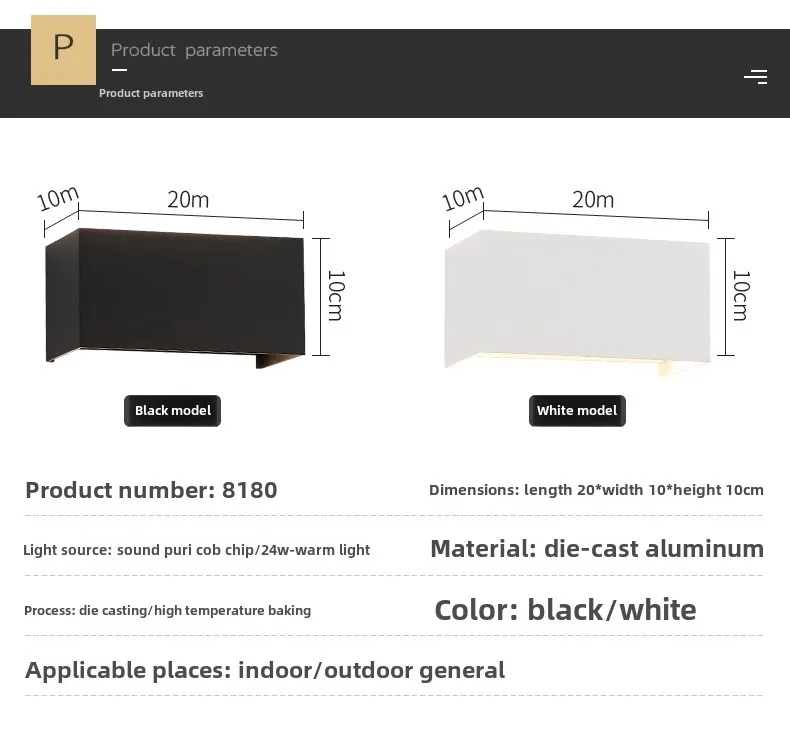 Aluminum LED Wall Lamp Outdoor Waterproof IP65 Interior Wall Light 12W24W Porch Garden Lights Living Room Street Stairs Lighting