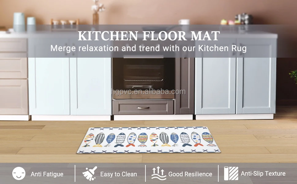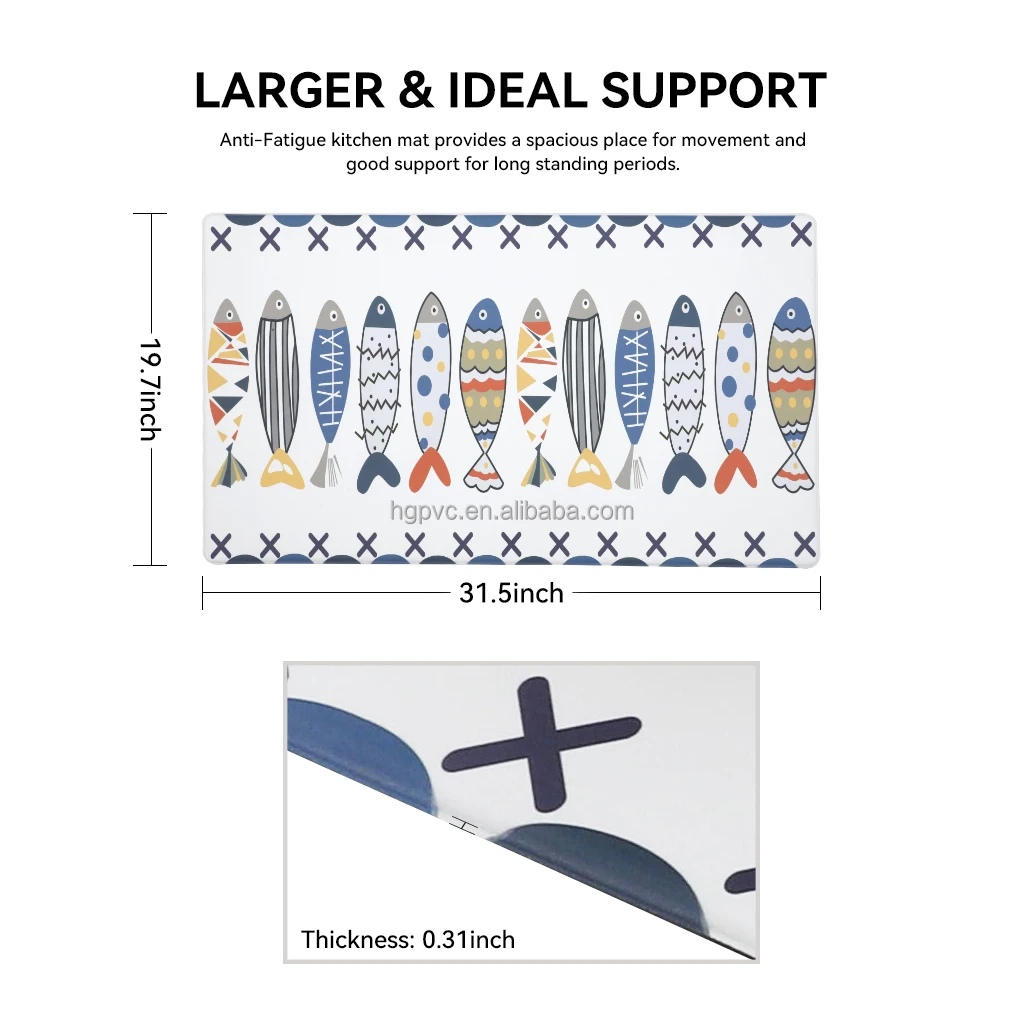 Heavy Duty PVC Design Cushioned Anti-Fatigue Kitchen Mat Waterproof Non-Slip Ergonomic Comfort Rug