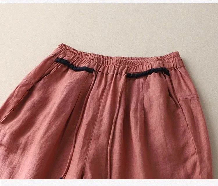 Loose Harem Pants Casual Versatile Fashion Cotton Linen Women's Summer Pants Solid Color Elastic High Waist Pink Pants 2025 New