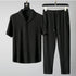 Men's Ultra-thin Two-piece Ice Silk Summer Set Two-piece Set Loose Fit Mid Sleeve T-shirt Sportswear Light Luxury Thin Quick