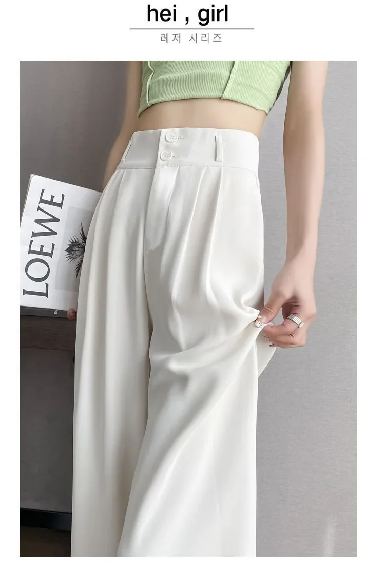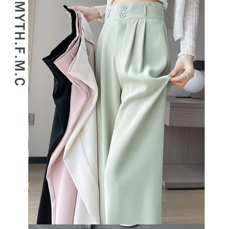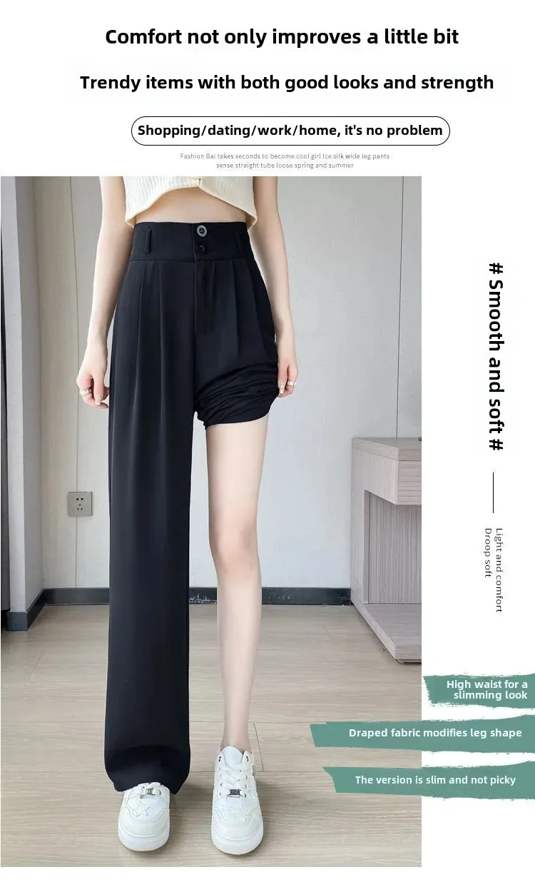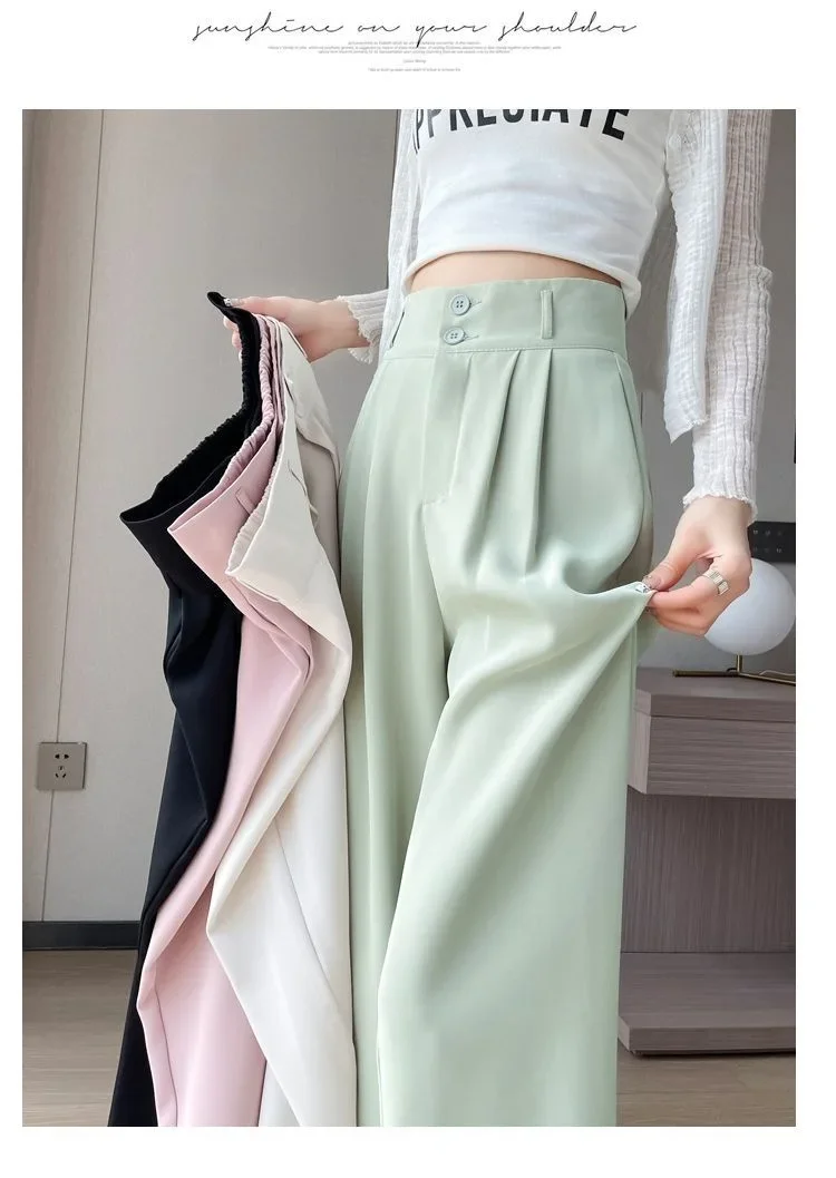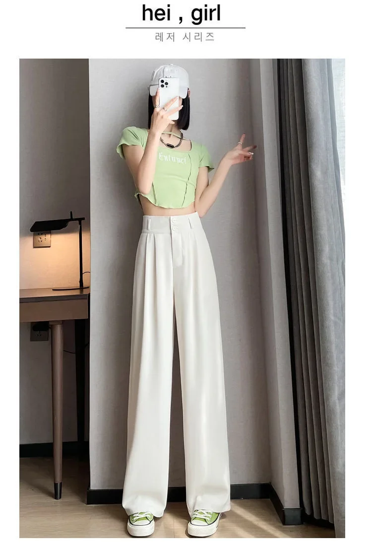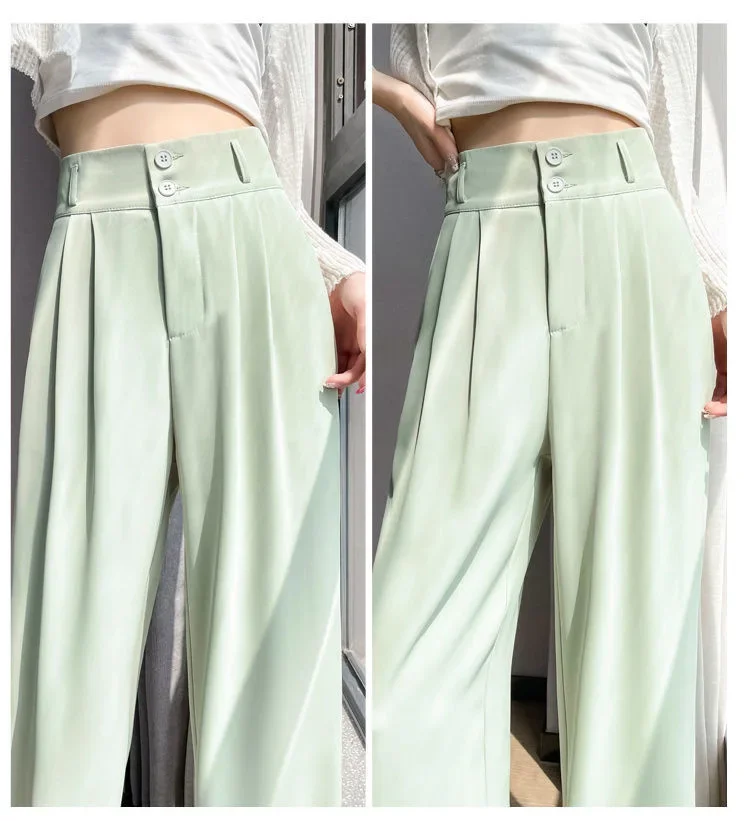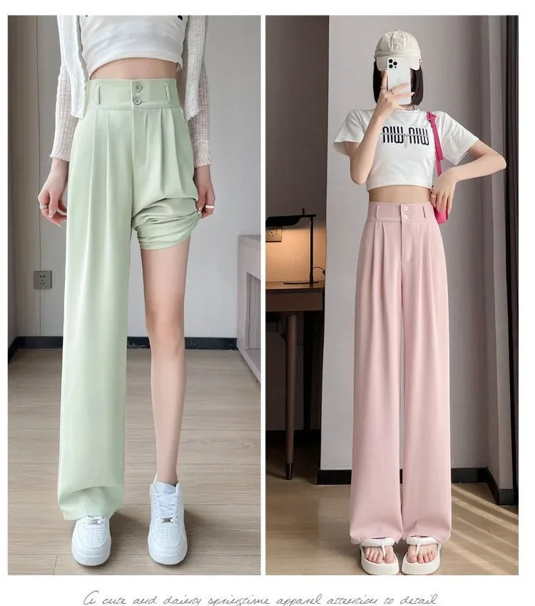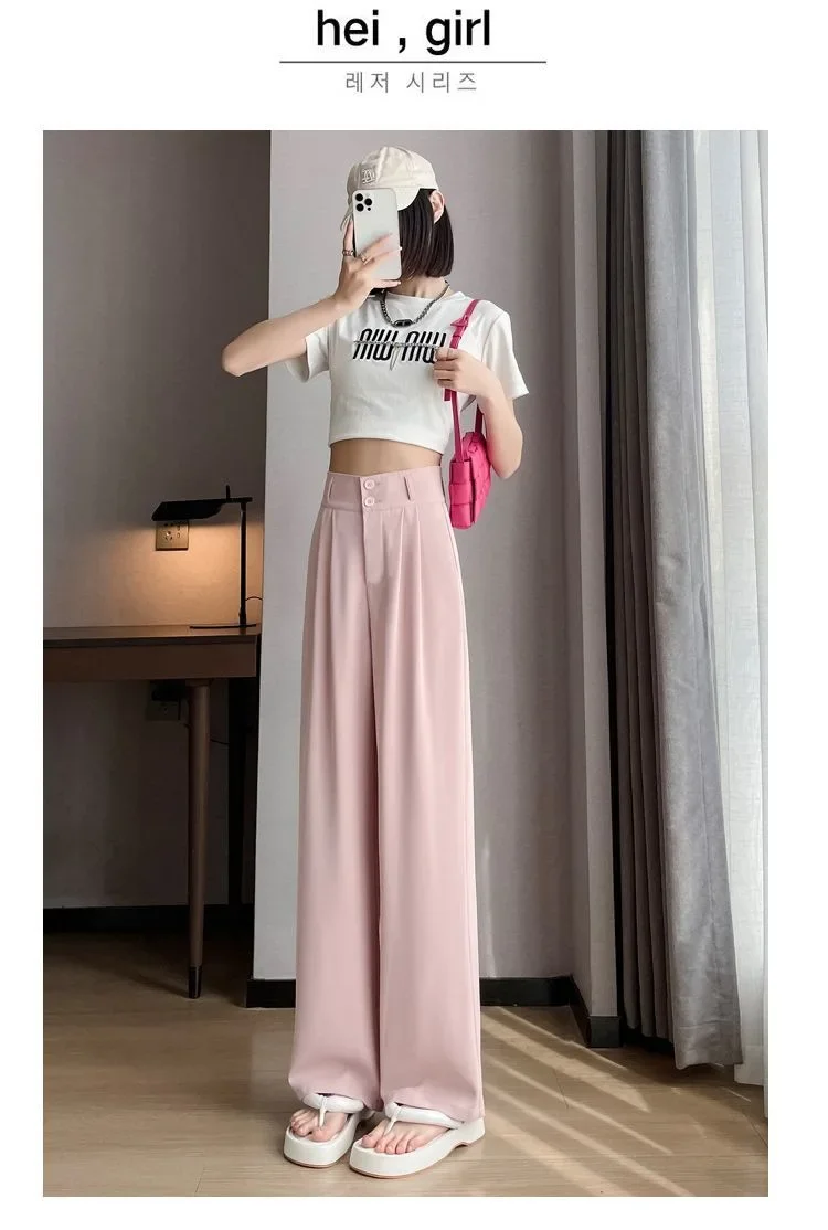 Summer Thin Pink Straight-Leg Ice Silk Bell Bottoms High-Waisted Slim Fit Women's Pants New 2023 Style Draped Long Trousers