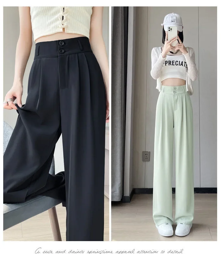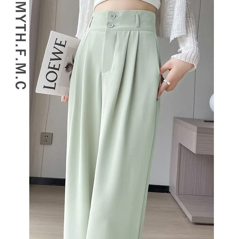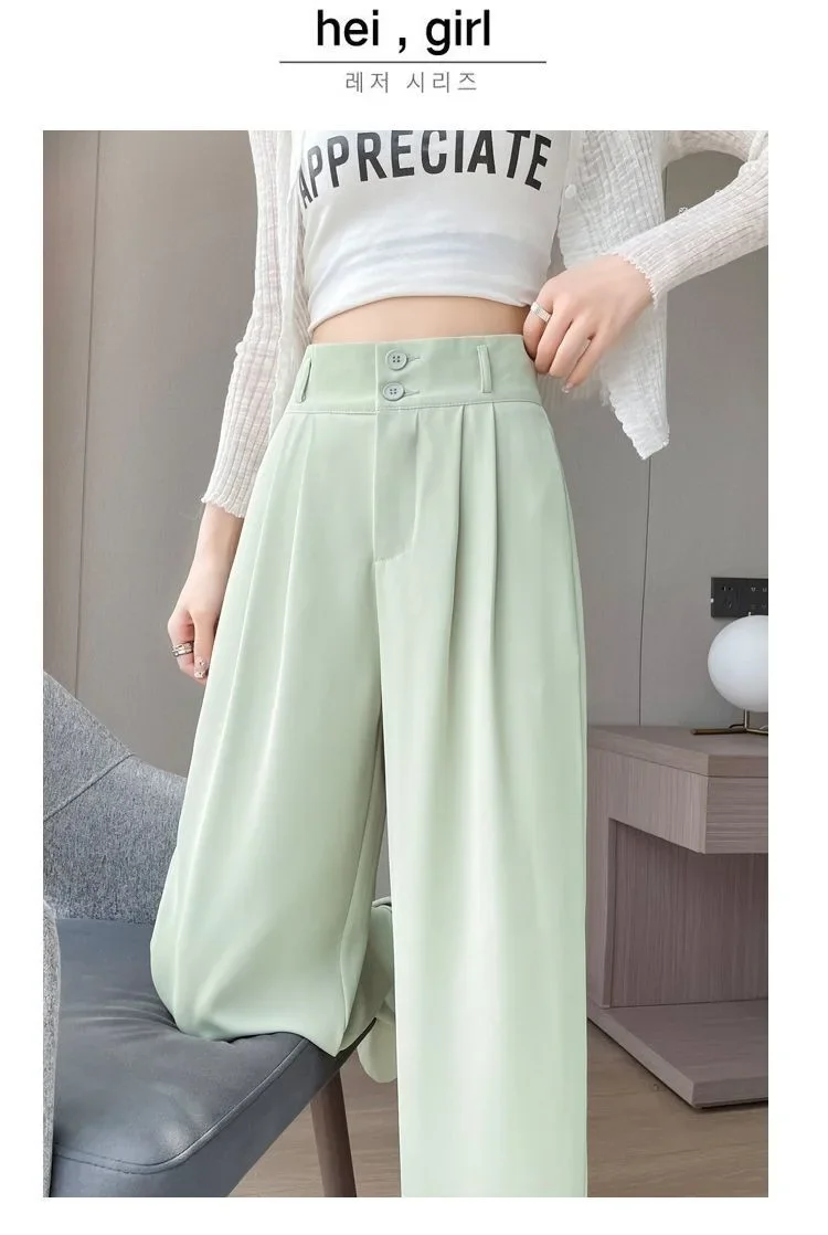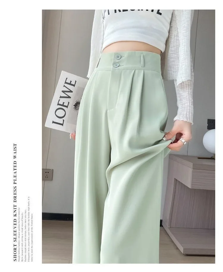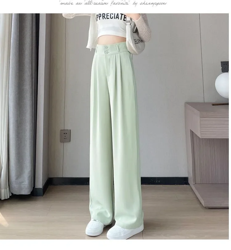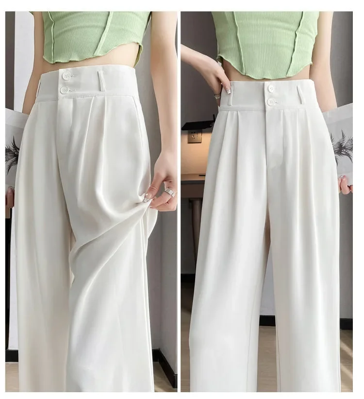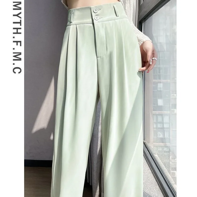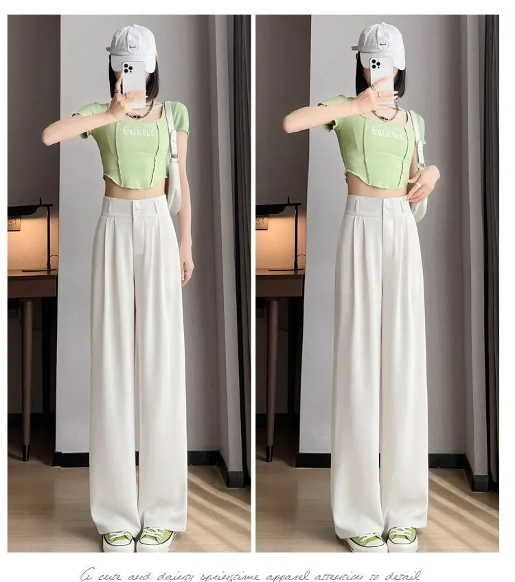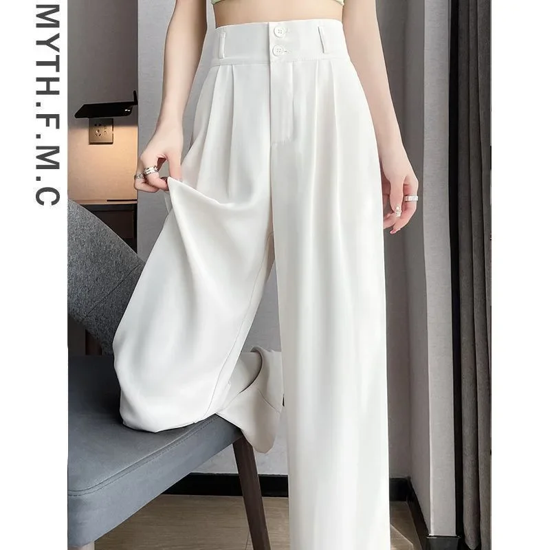 Summer Thin Pink Straight-Leg Ice Silk Bell Bottoms High-Waisted Slim Fit Women's Pants New 2023 Style Draped Long Trousers