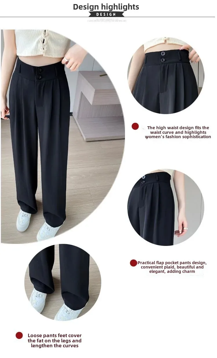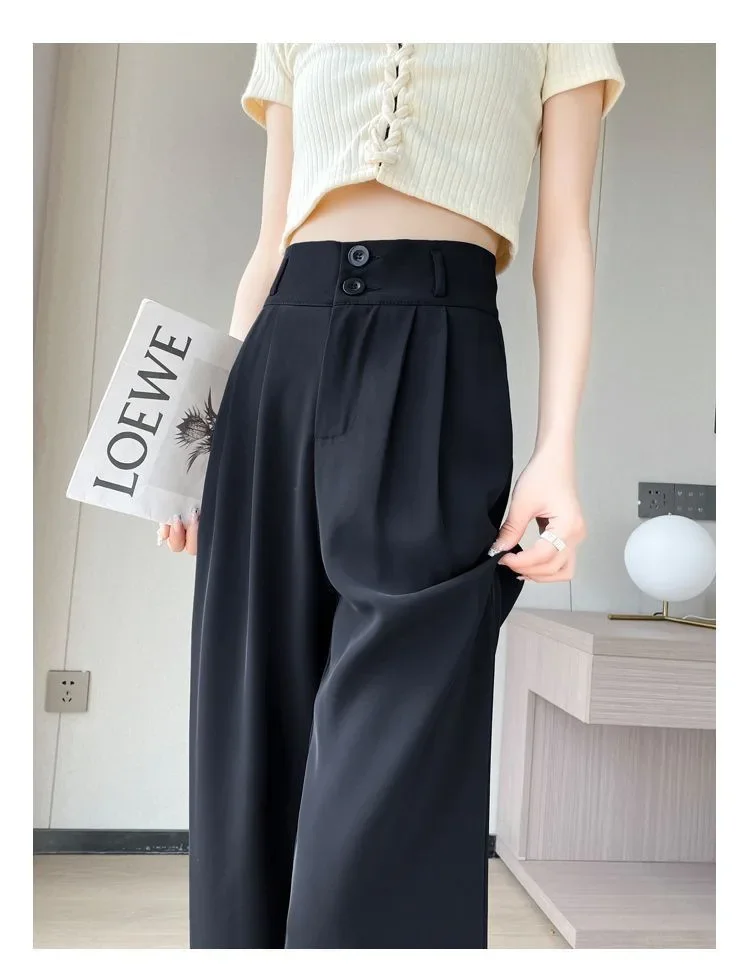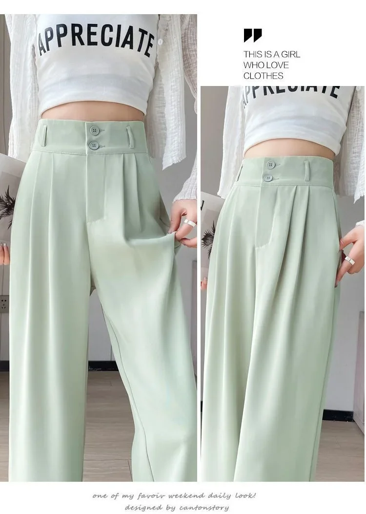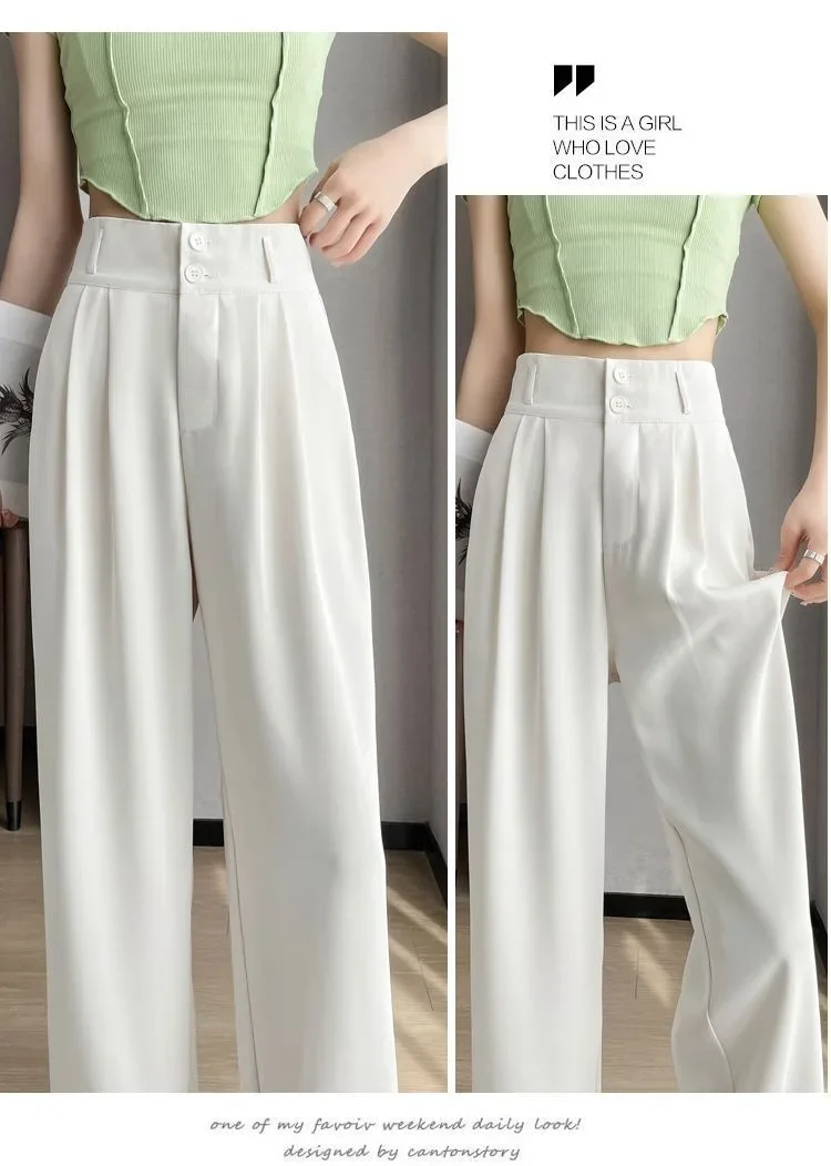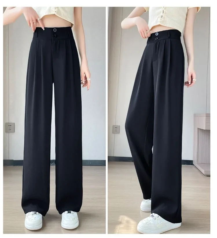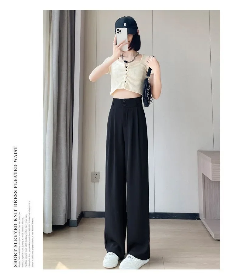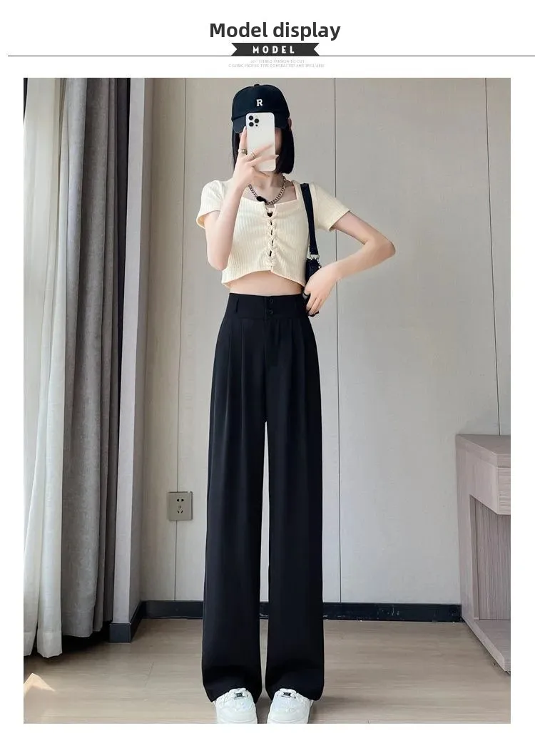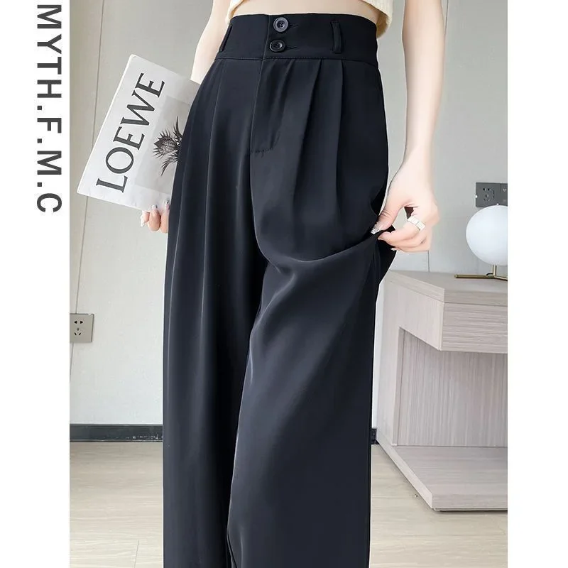 Summer Thin Pink Straight-Leg Ice Silk Bell Bottoms High-Waisted Slim Fit Women's Pants New 2023 Style Draped Long Trousers